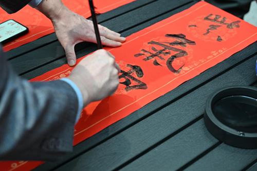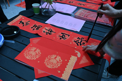 活動(dòng)當(dāng)天,鄭州市文聯(lián)的書(shū)法家們受邀來(lái)到現(xiàn)場(chǎng)。他們個(gè)個(gè)精神飽滿,手執(zhí)毛筆,在一張張紅紙上揮灑自如,書(shū)寫著寓意深遠(yuǎn)的新年序言。這些序言既是對(duì)過(guò)去一年的總結(jié),也是對(duì)新年的美好期許。書(shū)法家們的精彩表演贏得了現(xiàn)場(chǎng)觀眾的連連稱贊,租戶們紛紛表示:“書(shū)法家們寫的字真是太好了!‘福’字看著就喜慶,春聯(lián)的寓意也都非常美好。”