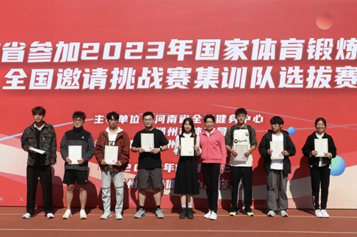 10月22日,河南省參加2023年國家體育鍛煉標(biāo)準(zhǔn)全國邀請(qǐng)?zhí)魬?zhàn)賽集訓(xùn)隊(duì)選拔賽在鄭州奧體中心西側(cè)田徑訓(xùn)練場火熱展開?,F(xiàn)場數(shù)百余運(yùn)動(dòng)員,通過30秒跳繩、男子1000米跑、女子800米跑、立定跳遠(yuǎn)、繞桿跑、坐位體前屈等一系列的體能測試,在秋日暖陽中,以飽滿的熱情和能量,挑戰(zhàn)自我,刷新體能成績。