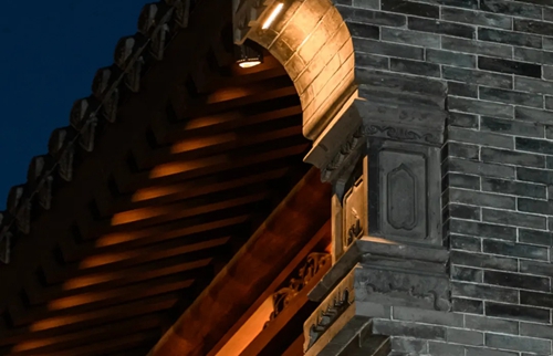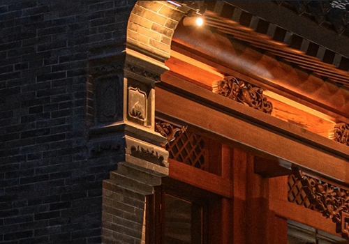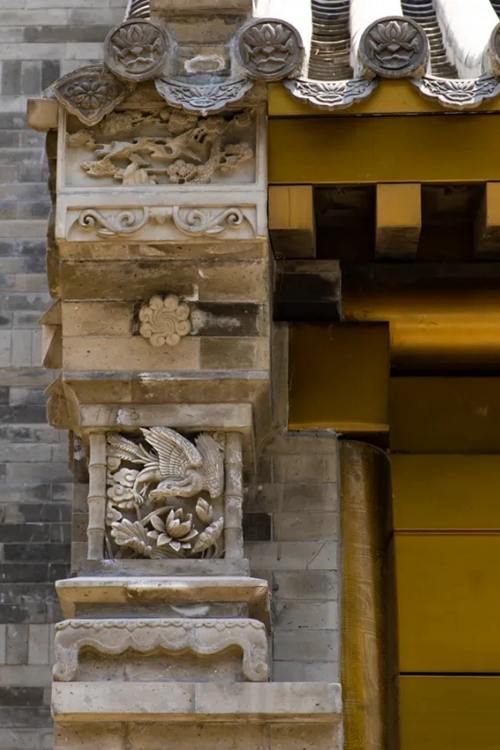 與之相對的17號樓主題為仙鶴,主題靈感來自于“仙鶴的故鄉(xiāng)”鶴壁。建筑上精美的墀頭也表達(dá)了此棟院子的主題,其上段位仙鶴,寓意松鶴延年,墀頭下端位仙鹿,寓意福祿綿長。而這處雕刻精美又涵義豐富的墀頭設(shè)計來源于河南鶴壁的古城摘星臺公園。